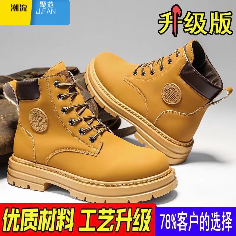 聚范大码马丁靴男2023新款高帮冬季户外工装靴男士劳保男鞋中帮大黄靴 0229卡其 43标准运动鞋尺码¥88.00热销中
