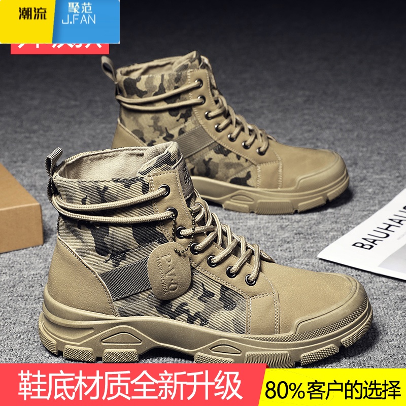 聚范男鞋夏季2024新款工地工作迷彩马丁靴男款透气防水防滑运动劳保鞋 卡其升级款更防滑耐磨 43¥124.00热销中