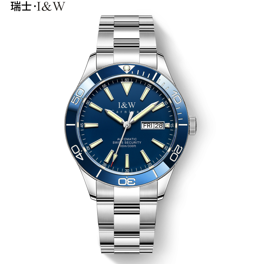 瑞士爱沃驰I&W CARNIVAL水鬼手表全自动机械表 男表鲨鱼系列100米潜水表运动夜光男士表潮流新品533G 精钢蓝面钢带¥1780.00热销中