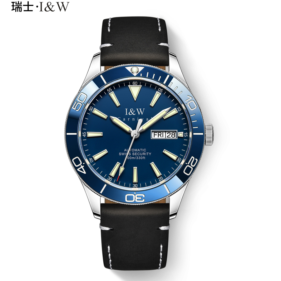 瑞士爱沃驰I&W CARNIVAL水鬼手表全自动机械表 男表鲨鱼系列100米潜水表运动夜光男士表潮流新品533G 精钢蓝面黑皮¥1780.00热销中