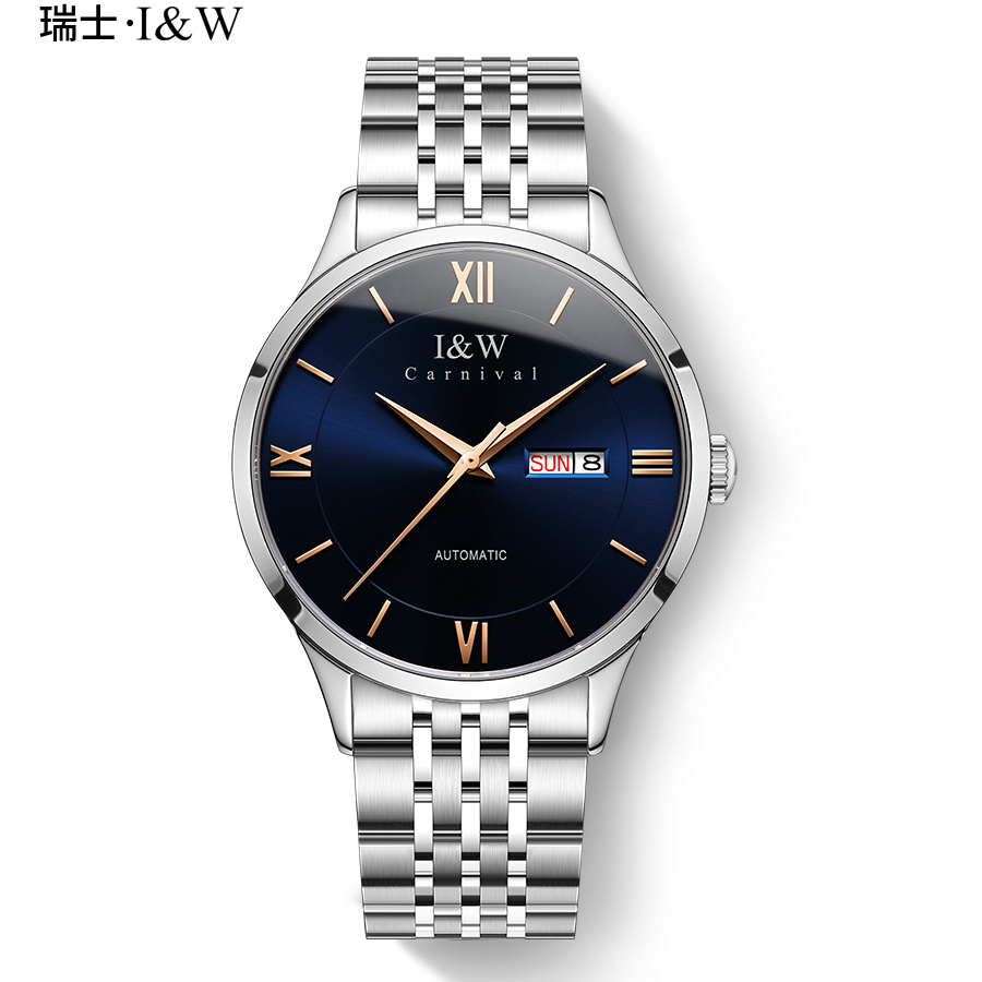 苏有朋代言瑞士爱沃驰I&W CARNIVAL正品手表全自动机械表男表薄款进口机芯男士防水个性双日历时尚潮流腕表528G 精钢蓝面赠品¥1198.00热销中