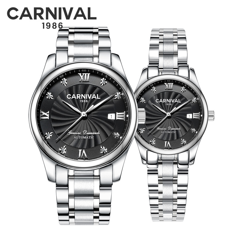 嘉年华瑞士品牌 全自动机械男表搭配石英女表 情侣表 商务休闲情侣手表一对 男士全自动机械表 时尚女士石英表 情侣款 对表 水钻黑面情侣对表赠品¥568.00热销中