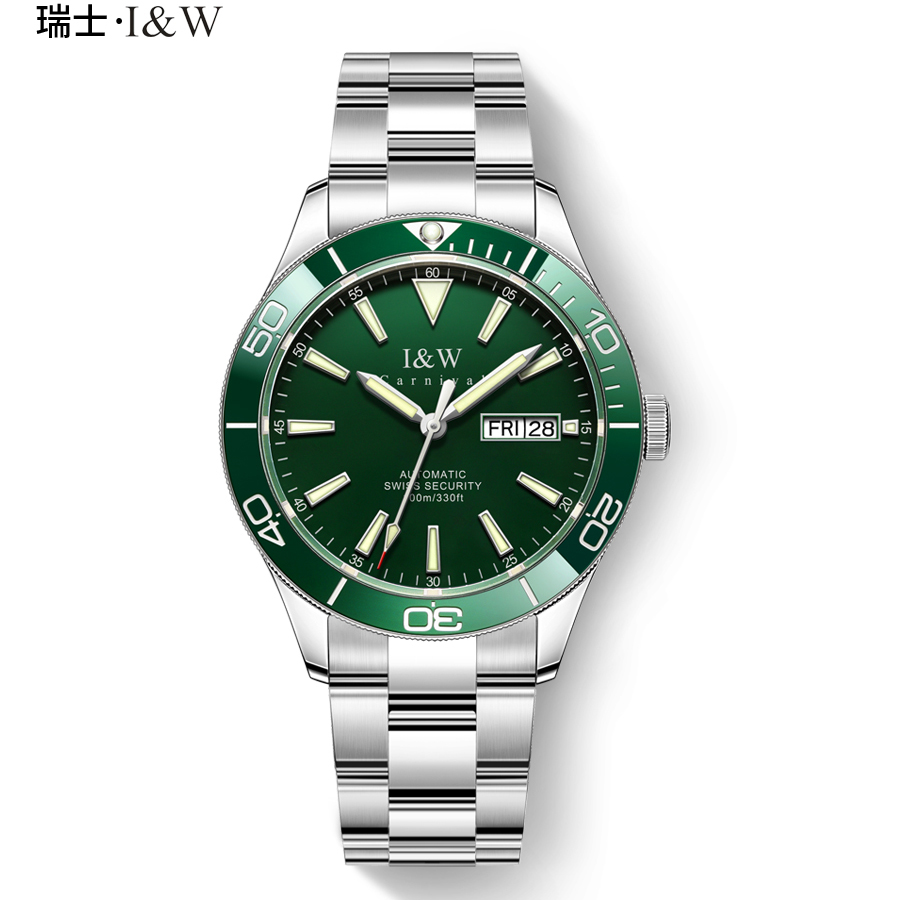 瑞士爱沃驰I&W CARNIVAL水鬼手表全自动机械表 男表鲨鱼系列100米潜水表运动夜光男士表潮流新品533G 精钢绿面钢带¥1780.00热销中