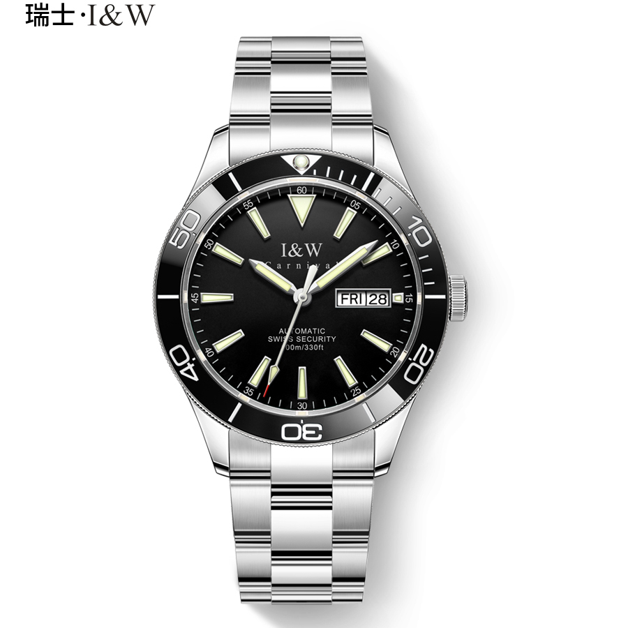 瑞士爱沃驰I&W CARNIVAL水鬼手表全自动机械表 男表鲨鱼系列100米潜水表运动夜光男士表潮流新品533G 精钢黑面钢带¥1780.00热销中