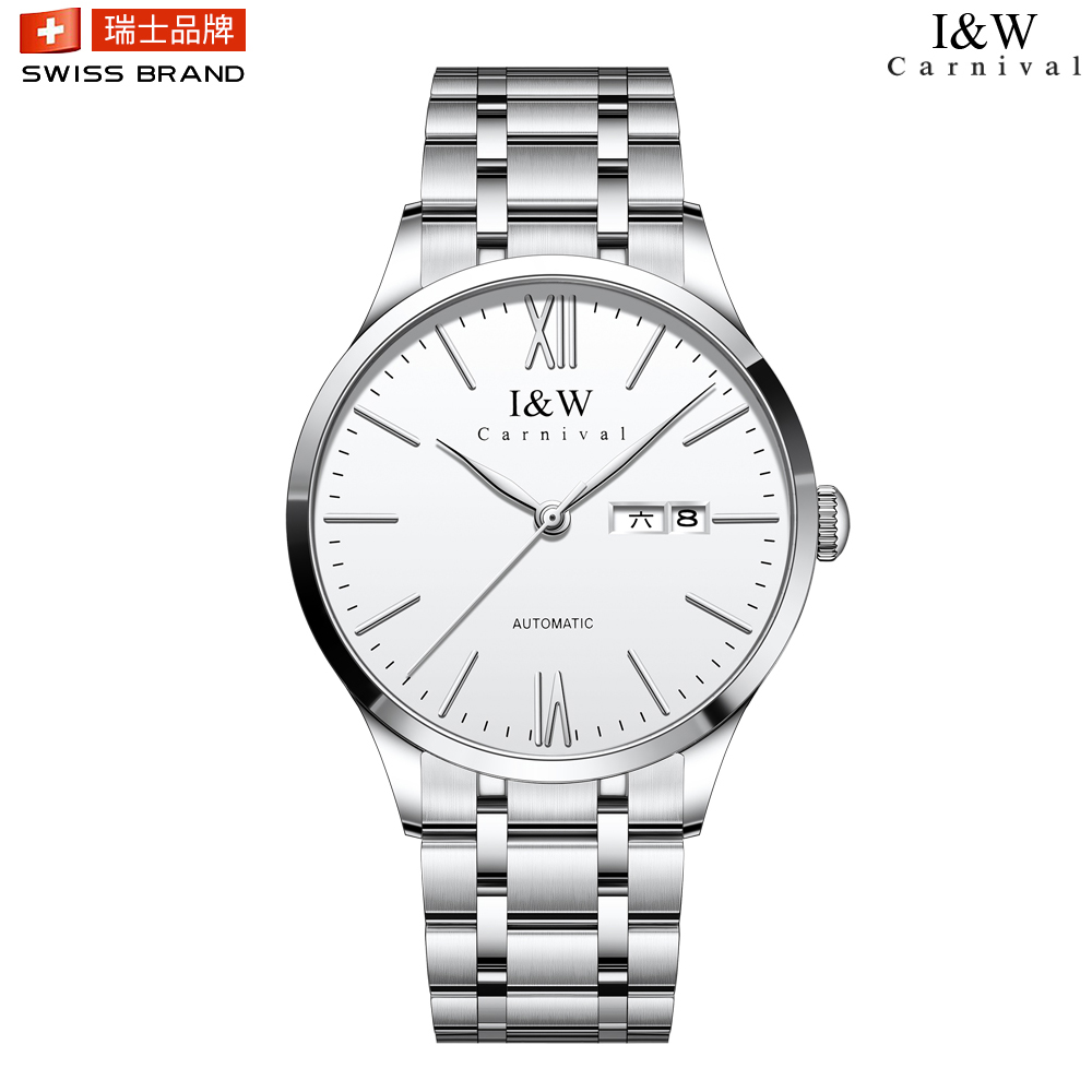 苏有朋代言瑞士爱沃驰I&W CARNIVAL正品手表全自动机械表男表薄款进口机芯男士防水个性双日历时尚潮流腕表528G 精钢白面¥1198.00热销中
