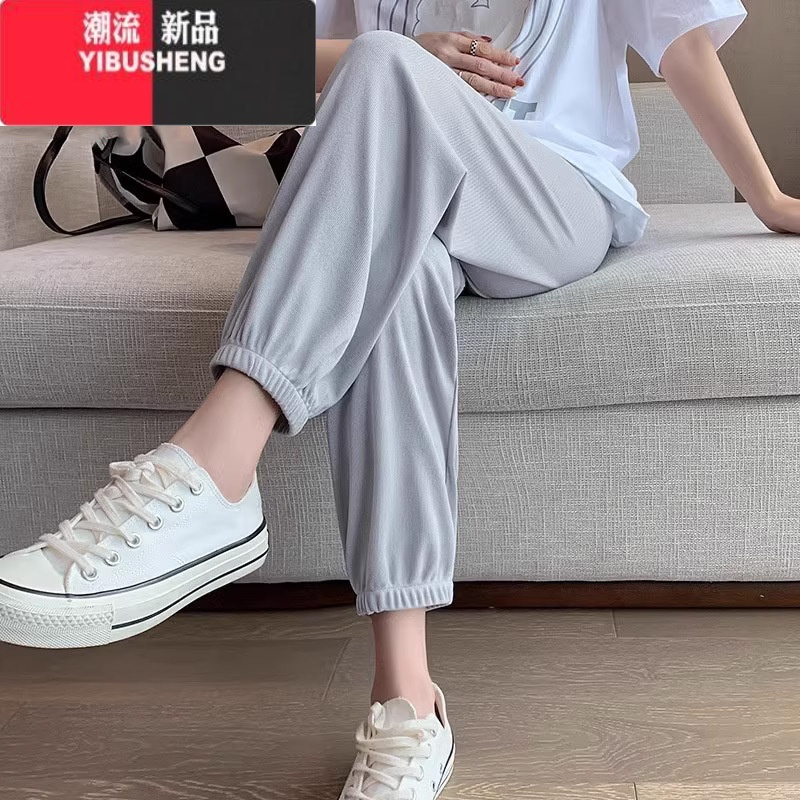 YIBUSHENG300斤胖mm大码冰丝运动裤女季薄款休闲哈伦束脚灯笼裤梨型防型 XL适合115-125斤 灰色¥44.00热销中 -