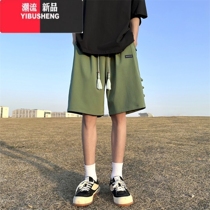 YIBUSHENG胖mm新中式盘扣短裤女2024新款季宽松休闲过膝五分中裤大码女五 5XL210-230斤 军绿色¥88.00热销中 -