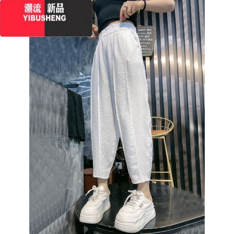 YIBUSHENG凉凉裤女季薄款束脚裤百搭显瘦哈伦裤休闲裤大码宽松显瘦九分薄 L推荐105-115斤 蓝色¥72.00热销中 -
