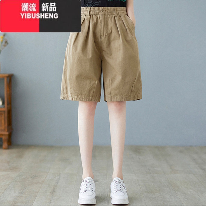 YIBUSHENG棉麻五分短裤女士季薄款大码中年妈妈高腰宽松休闲显瘦阔腿中闲 XXXL125-135斤 卡其色¥65.00热销中 -