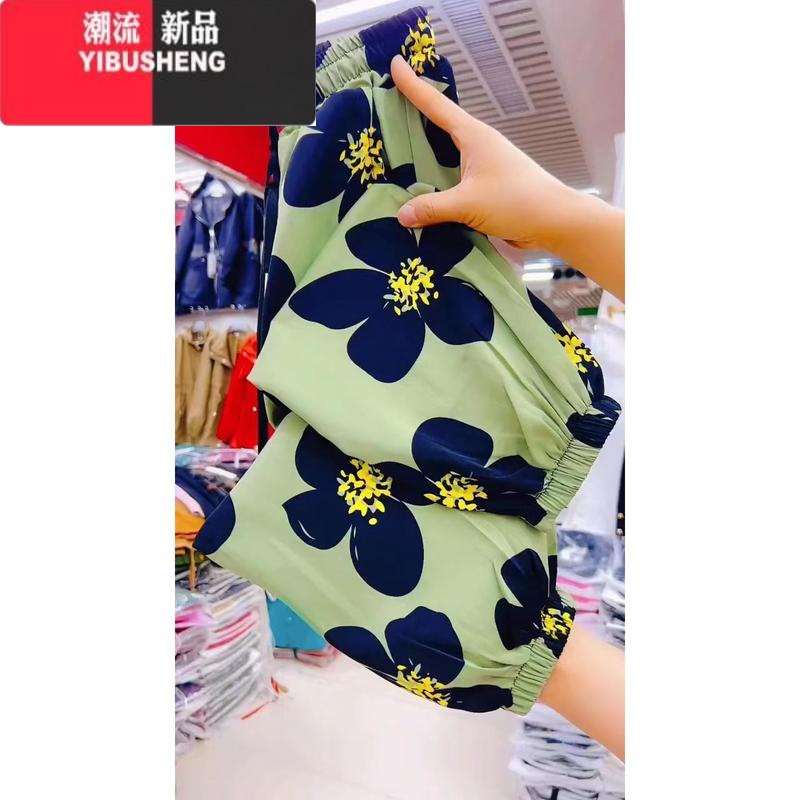YIBUSHENG季新款冰丝休闲裤女大码宽松束脚九分哈伦裤胖mm显瘦高腰碎花I XL推荐115-130斤 5012#绿色¥72.00热销中 -