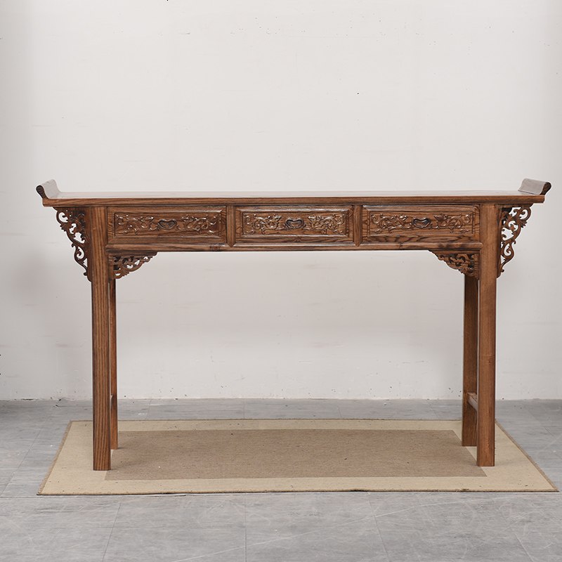 农村中堂六件套实木仿古中式四件套榆木太师椅八仙桌佛龛财神供桌 整装_三抽条案加厚款(运费到付)¥1427.40热销中 -