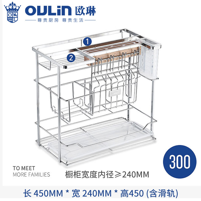 欧琳(OULIN)OL-LTS105H 拉篮 橱柜调味篮置物架挂件 不锈钢厨房置物架调味篮刀架 静音阻尼导轨 300柜体¥459.00热销中2评价 100.0%好评 -
