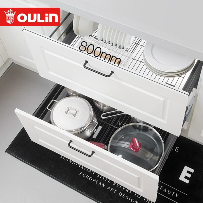 欧琳橱柜拉篮2008D厨房锅碗篮碗架双层抽屉式不锈钢阻尼轨道置物架碗架 柜体外径>=900mm¥719.00热销中 -