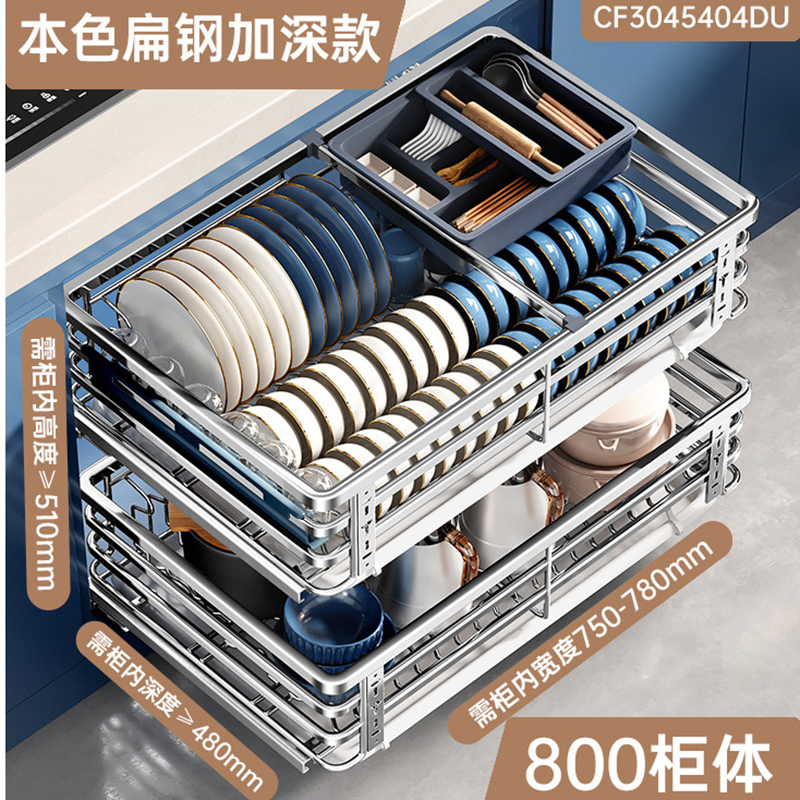 欧琳拉篮厨房橱柜 不锈钢碗碟收纳拉篮 抽屉式家用碗架 双层收纳 700柜¥679.00热销中 -