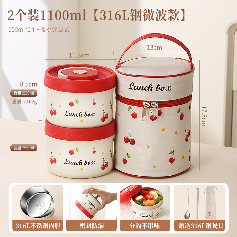 樱桃便当盒 2个装1100ml(2大)送316L勺筷+保温提包¥82.00热销中