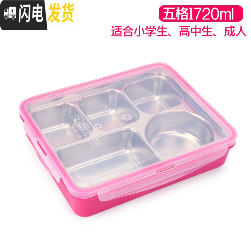 三维工匠韩国304不锈钢五格餐盘学生饭盒儿童便当盒食堂分格保温便携带盖 五格粉透1720ml¥269.00热销中