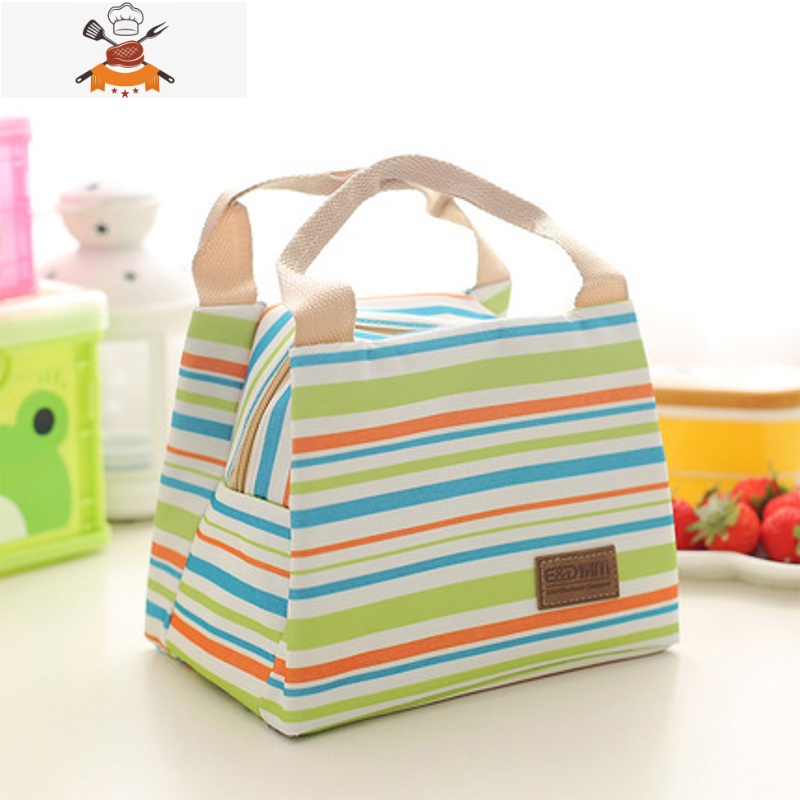 敬平可爱卡通保温铝箔饭盒袋日式大号带饭防水午餐包小学生手提便当包 绿色条纹22x14x17.5cm¥15.30热销中