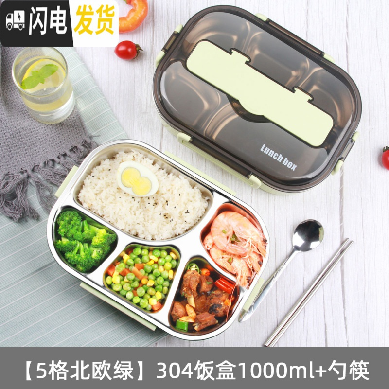 三维工匠上班族饭盒健身减脂学生1人带饭分格型便携304不锈钢带盖保温餐盒 【5格北欧绿】304饭盒1000ml+勺筷¥75.00热销中