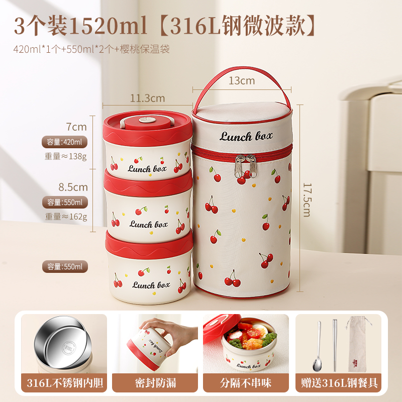 樱桃便当盒 3个装1520ml(2大1小)送316L勺筷+保温提包¥92.00热销中