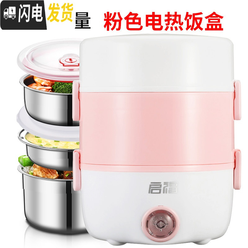 三维工匠电热饭盒带饭神器上班族保温桶加热饭菜锅蒸煮便携式多功能单1人2 粉色-三层¥120.00热销中