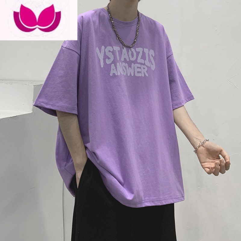 七斓短袖男港风t恤潮流百搭夏季衣服男潮牌宽松美式复古高街半袖 M100斤-120斤可穿 紫色¥68.00热销中