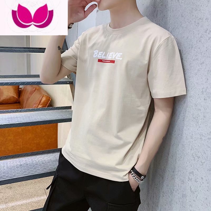 七斓夏季半袖t恤男短袖上衣潮流衣服修身短袖休闲2022新款体恤打底衫 M 1018短袖卡其色¥19.00热销中