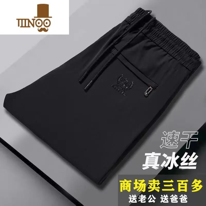 YANXU2023夏季冰丝裤子男薄款潮流直筒西装长裤宽松大码垂感速干休闲长 L(100-120斤 黑色¥27.00热销中1评价 100.0%好评