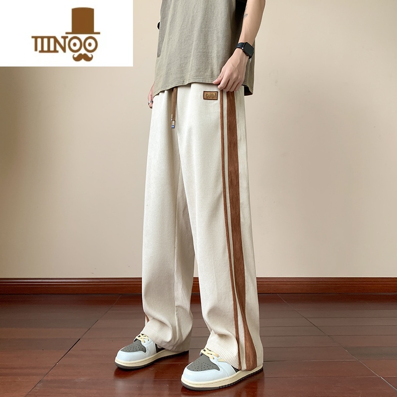YANXU潮流条纹裤子男士夏季直筒宽松运动新款拖地百搭垂感休闲长裤 M推荐90-110斤 02米白色满69元减1元¥70.00热销中