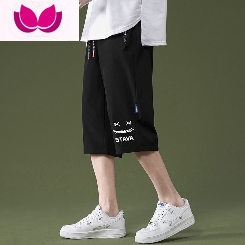 七斓冰丝七分裤男夏季新款薄款运动短裤大码宽松中裤男士速干休闲裤子 4XL 202黑色¥52.00热销中