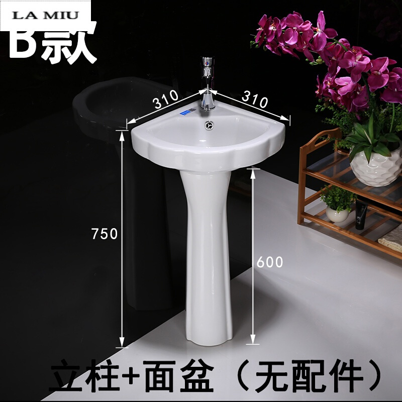 立柱盆陶瓷卫浴洗脸盆洗手盆一体式小户型卫生间阳台艺术落地台盆_2 B款立柱盆+下水套装+冷热龙头¥304.00热销中
