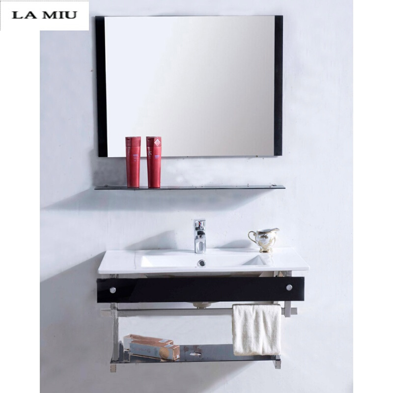 钢化玻璃盆挂墙式陶瓷洗手洗脸盆浴室台盆卫生间洗漱台盆简约浴柜 黑色高边80*46送龙头全套¥444.00热销中