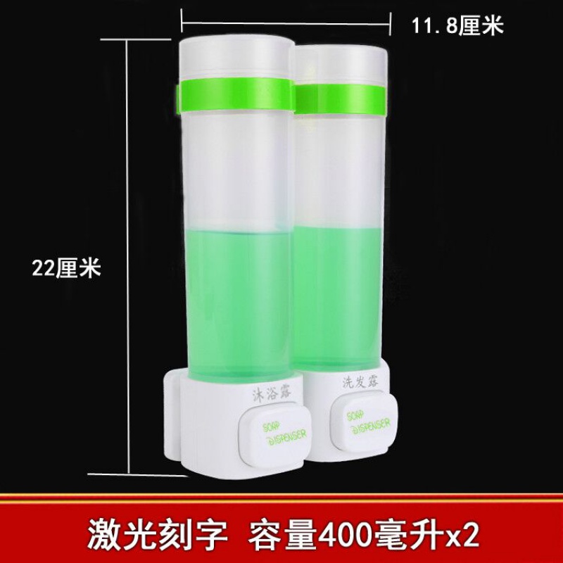 免打孔壁挂式手动按压皂液器闪电客宾馆酒店浴室洗发水沐浴露盒洗手液瓶 圆形透明绿双头刻字