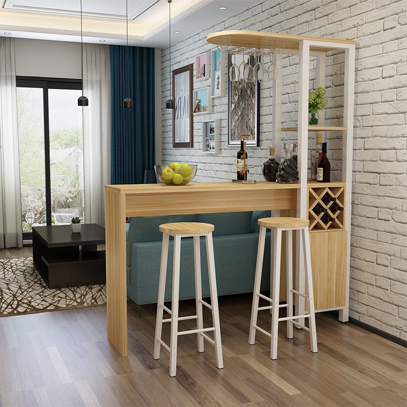 简约现代吧台桌家用酒柜玄关转角隔断柜创意小吧台桌高脚餐桌欧式_513_379 组装_高200*长140*深30(送双凳)_浅胡桃+白架_框¥688.00热销中