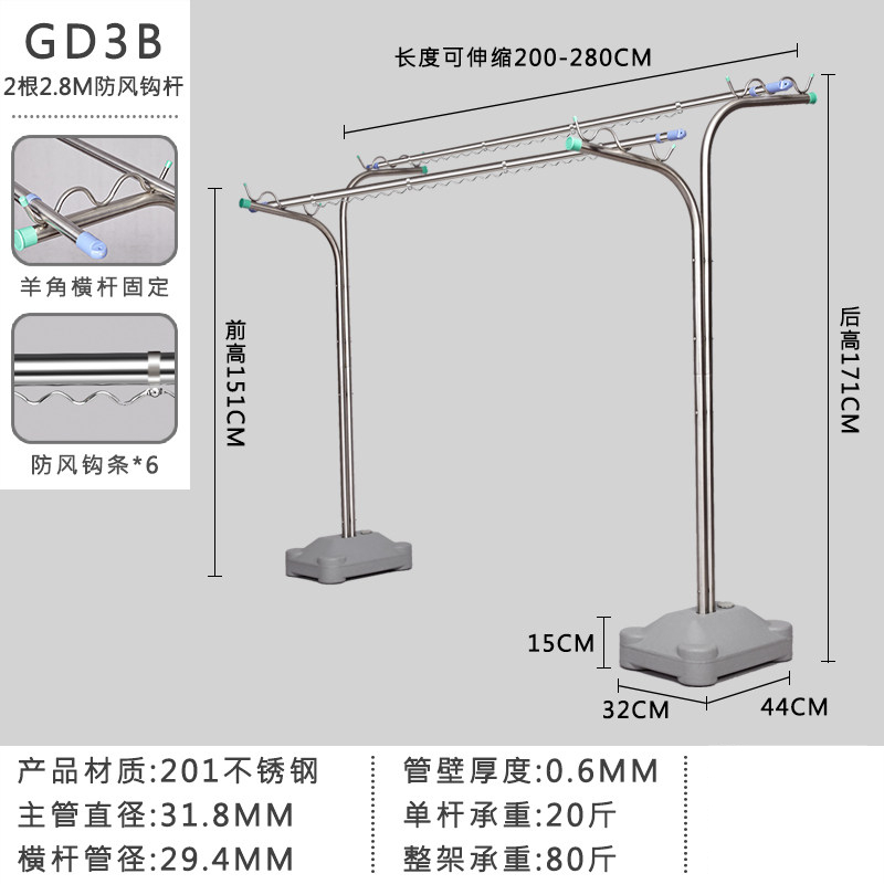 鹍翔三杆不锈钢晾衣架240CM/个¥216.00热销中