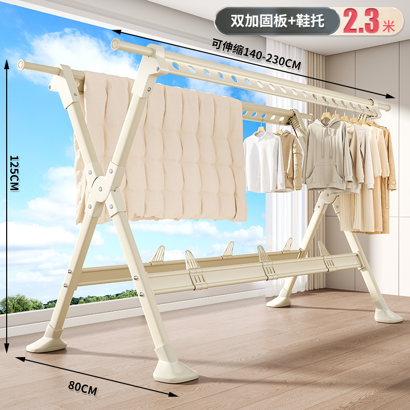 邦云晾衣架落地家用阳台 奶油白【1.4-2.3m伸缩】6晒鞋托+防风脚垫¥215.00热销中