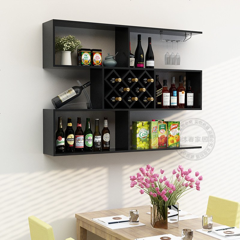 现代简约酒架壁挂餐厅墙上酒柜家用饭店吧台悬挂式创意红酒置物架_567_22 140长133高20深4层黑胡桃色¥458.00热销中