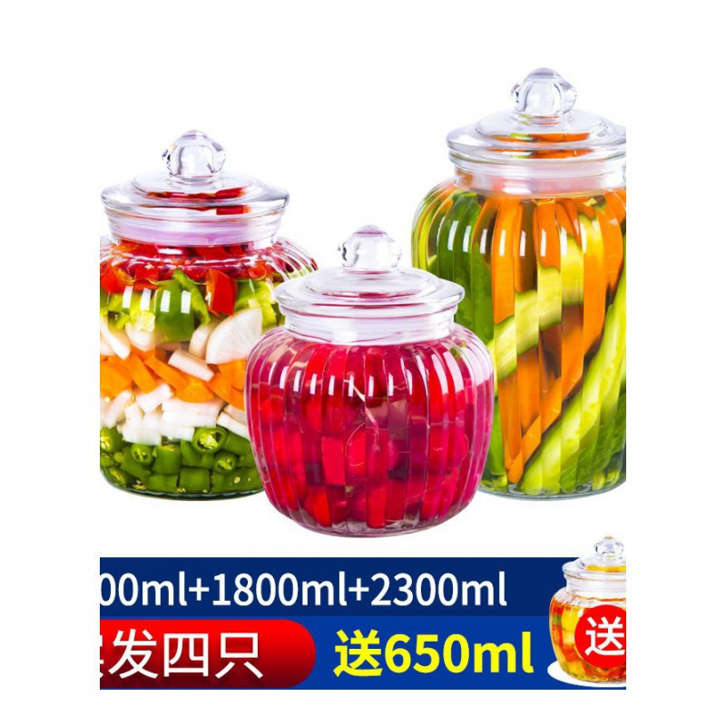 美帮汇泡菜坛子密封罐玻璃储物罐密封瓶食品五谷杂粮收纳盒泡菜罐子糖罐 条纹罐1500+1800+2300(送650单只,实际发四只¥102.60热销中 -