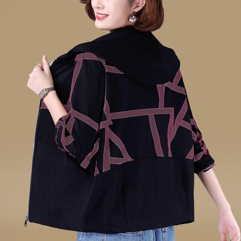 迪鲁奥(DILUAO)女士短外套2021年新款春秋季韩版宽松百搭夹克流行女装妈妈装卫衣_89 L 红条¥128.00热销中