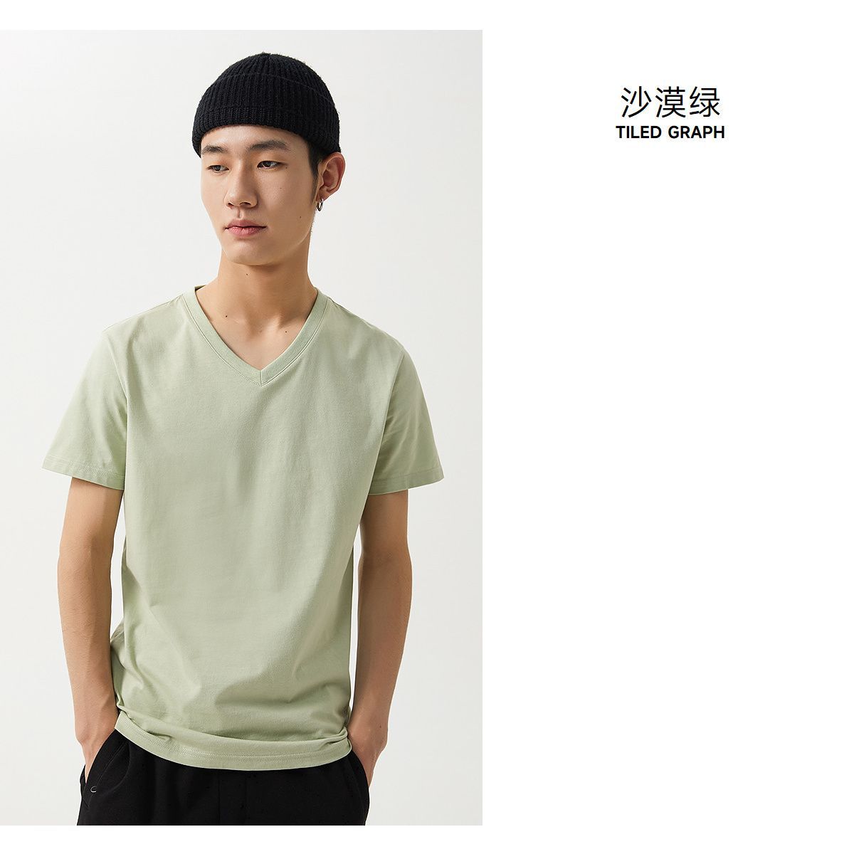 美特斯邦威短袖T恤男士舒适纯色V领半袖打底衫韩版学生体恤男潮流 175/96A 沙漠绿¥39.00热销中 -