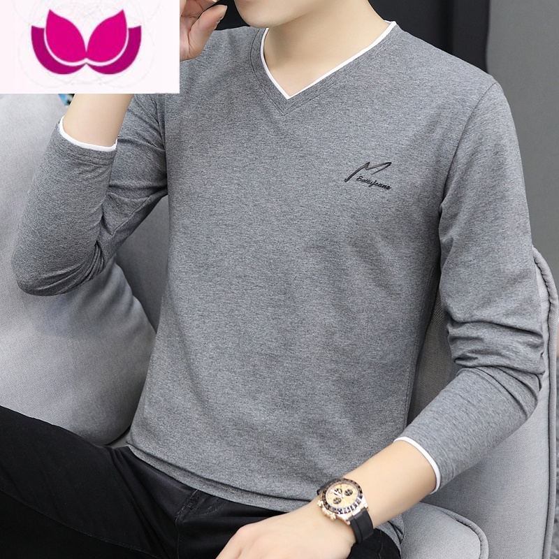 七斓【厂家批一件代发】刺绣上衣长袖t恤男潮秋季纯色简约打底衫 3XL160-175斤 深灰色929款¥53.00热销中 -