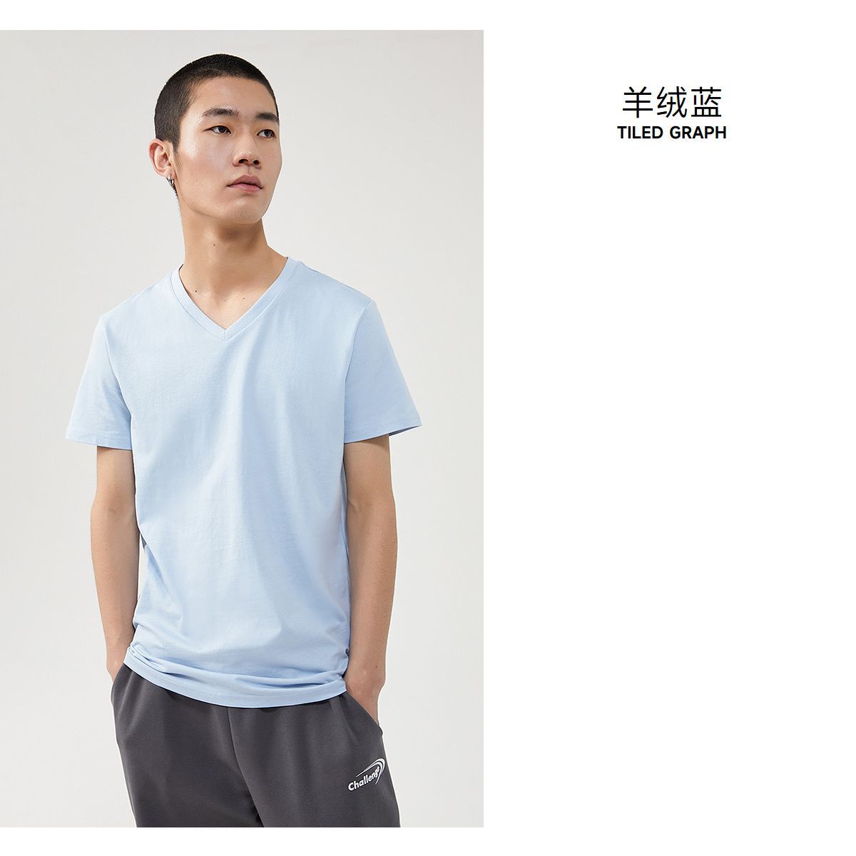 美特斯邦威短袖T恤男士舒适纯色V领半袖打底衫韩版学生体恤男潮流 170/92A 珍珠蓝¥39.00热销中 -