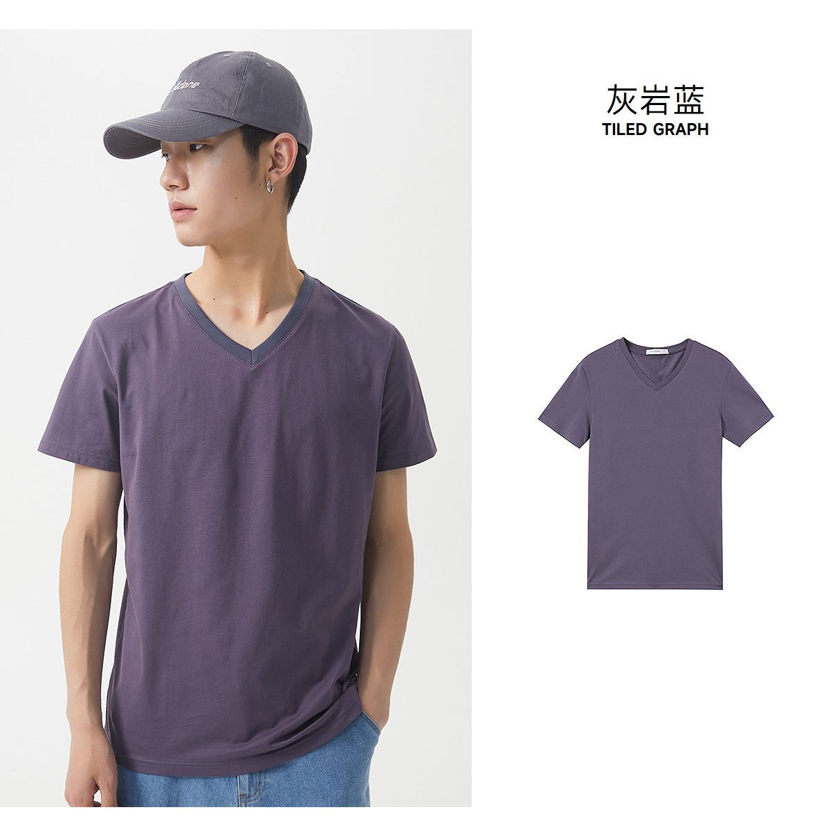 美特斯邦威短袖T恤男士舒适纯色V领半袖打底衫韩版学生体恤男潮流 180/100A 灰岩蓝49元任选3件¥39.00热销中 -