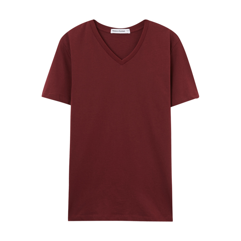 美特斯邦威短袖T恤男士舒适纯色V领半袖打底衫韩版学生体恤男潮流 175/96A 黛红¥39.00热销中 -