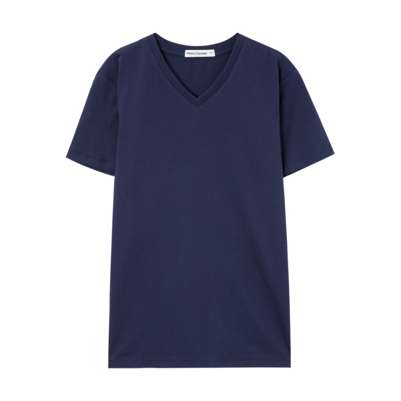 美特斯邦威短袖T恤男士舒适纯色V领半袖打底衫韩版学生体恤男潮流 170/92A 深军蓝¥39.00热销中