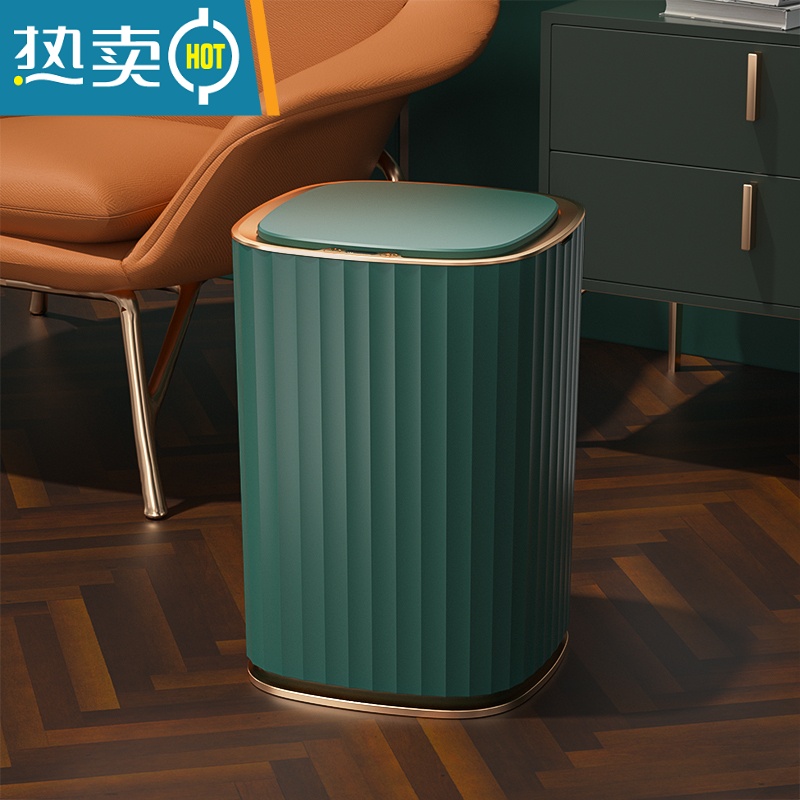 XIANCAI轻奢智能垃圾桶感应式带盖家用客厅厨房厕所卫生间自动电动便纸桶 15L墨绿金-方形建议厨房使用 均码¥178.00热销中