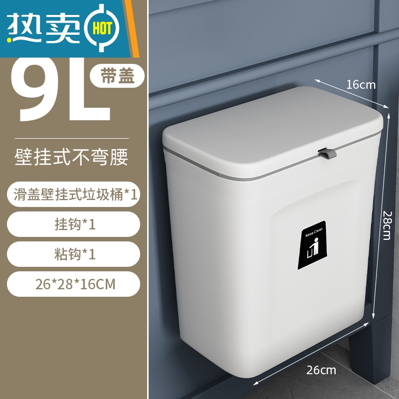 XIANCAI垃圾桶卫生间厕所壁挂式带盖家用创意厕纸收纳筒夹缝小纸篓卫生桶 壁挂带盖垃圾桶9L送挂板/粘胶/固定压圈 均码¥54.00热销中