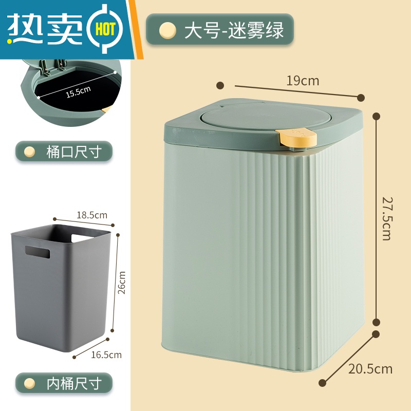 XIANCAI垃圾桶家用带盖按压式厕所卫生间厨房大容量客厅轻奢卧室桌面纸篓 大号迷雾绿通用型适应家居办公各大场所使用 均码¥45.00热销中
