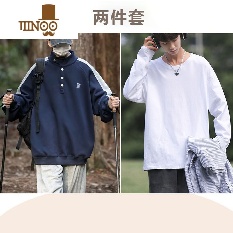 YANXU美式复古拼接立领休闲卫衣男士情侣日系宽松套头外套学生宽松潮流 XL 蓝色卫衣+白色长T¥109.00热销中 -