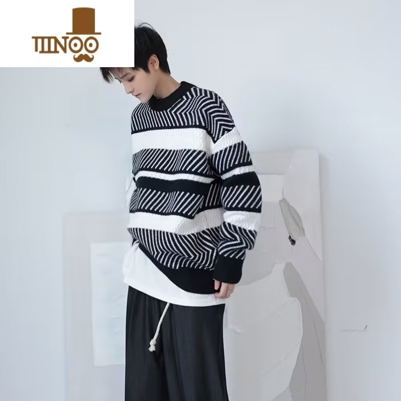 YANXU毛衣外套男潮牌宽松情侣套头线衣2023款日系百搭休闲条纹上衣 2XL 绿色¥72.00热销中 -