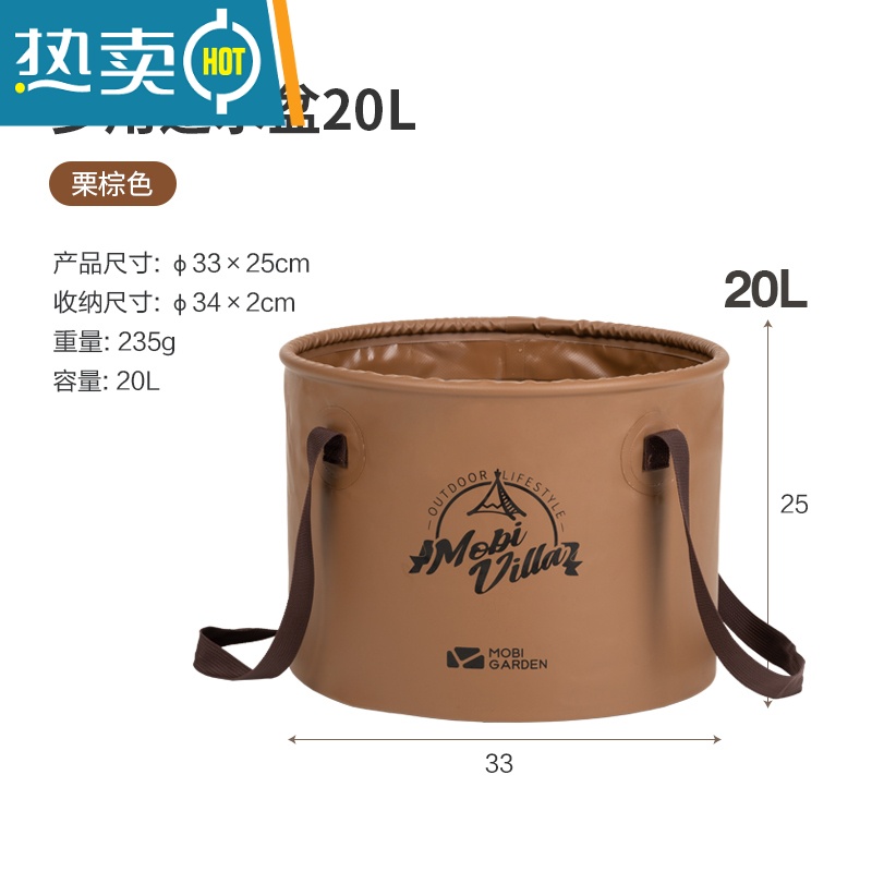 敬平旅行可折叠水盆旅游洗脸盆洗衣袋泡脚桶便携式户外露营水桶 栗棕色(20L)¥88.00热销中